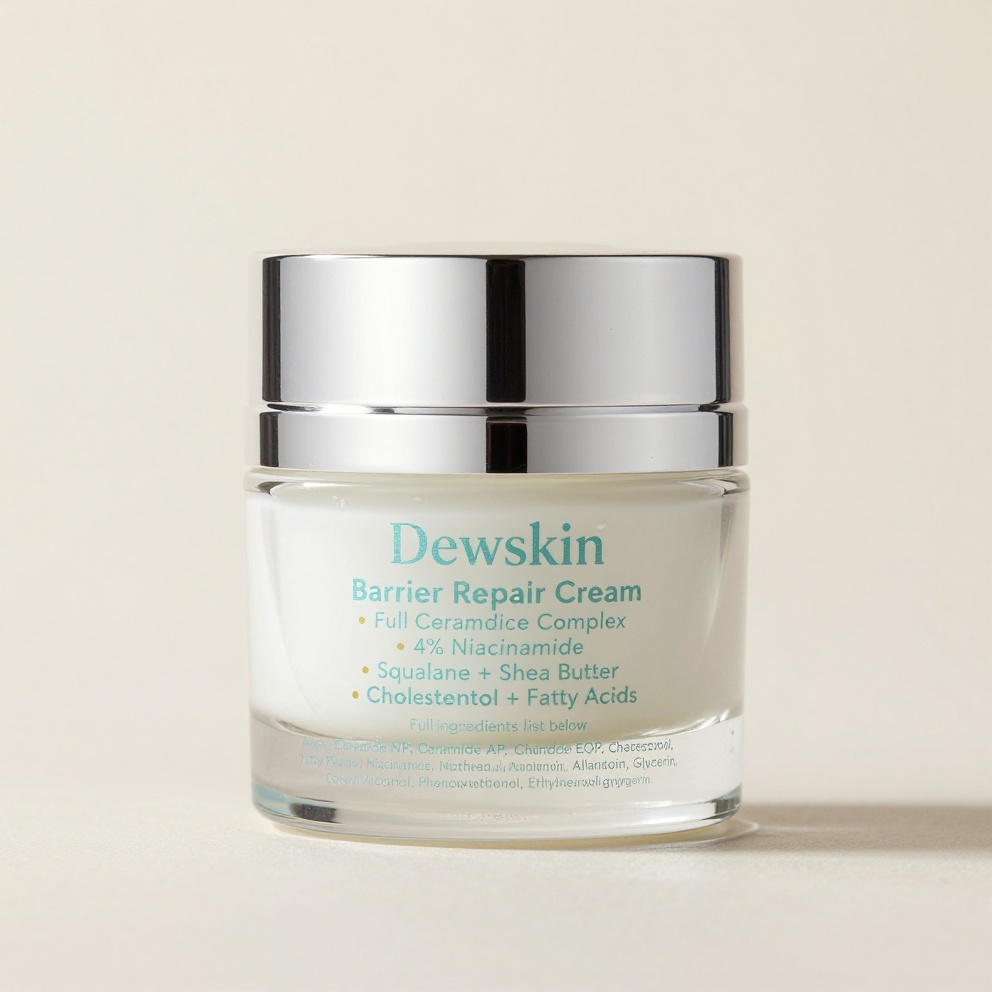 DewSkin Barrier Repair Cream strengthens the skin barrier, deeply nourishes, and locks in moisture while calming sensitivity. This rich-yet-lightweight cream is ideal for dry, dehydrated, or compromised skin.